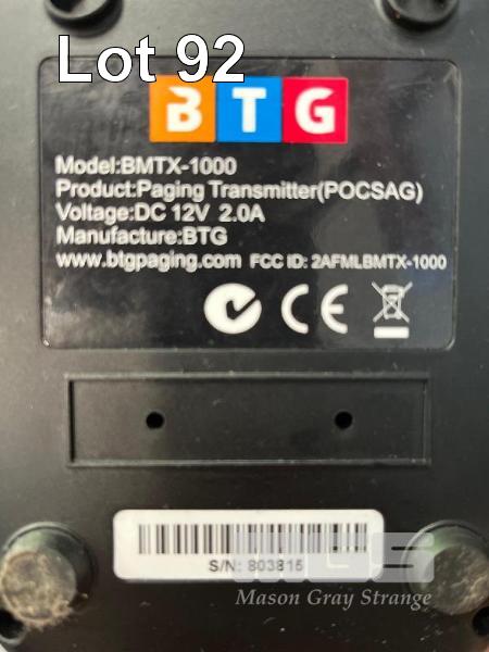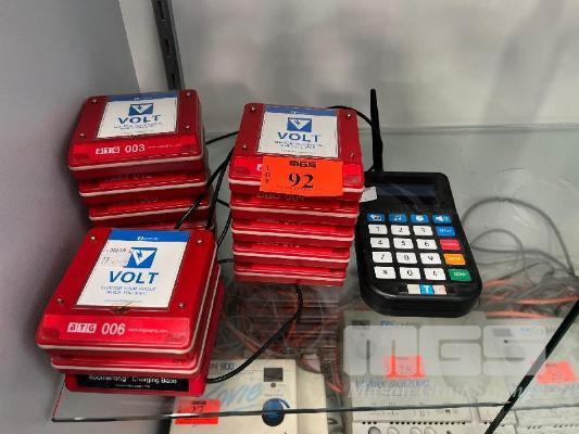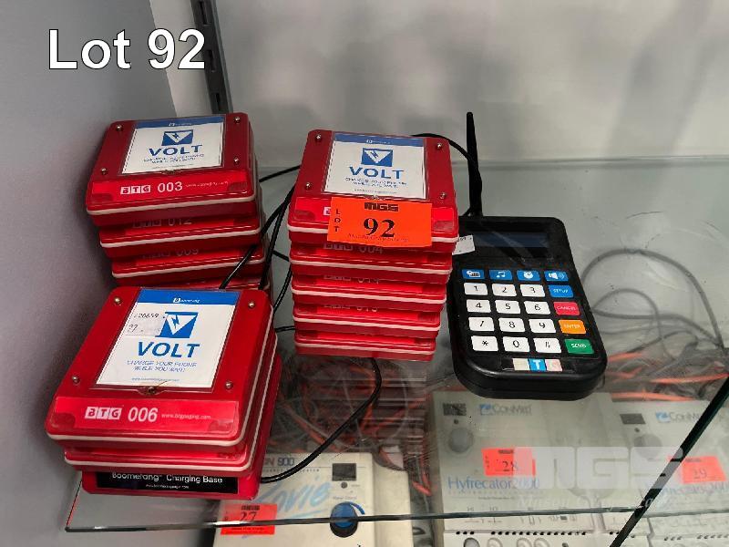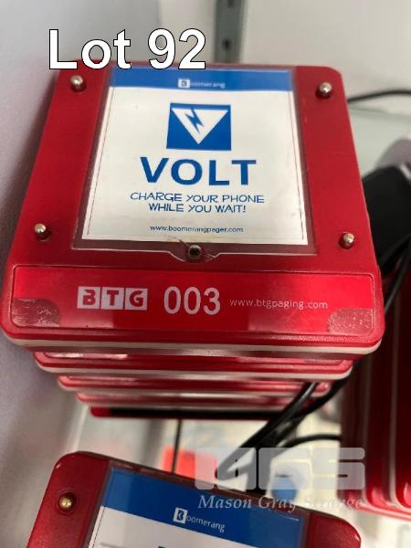 RESTAURANT PAGING SYSTEM, BOOMERANG, BTG MOD: BMTX-1000 11 x PAGERS, 2 x CHARGING BASES & TRANSMITTER