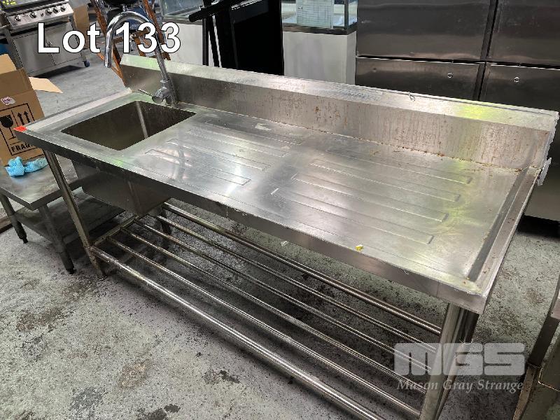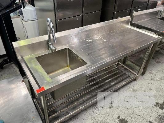 STAINLESS STEEL SINGLE BOWL SINK, 1800 x 600mm WITH TAP & SPLASHBACK