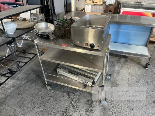 STAINLESS STEEL TOP BENCH, 122 x 76cm & 3 TIER TROLLEY, BAIN MARIE, BUG ZAPPER ETC