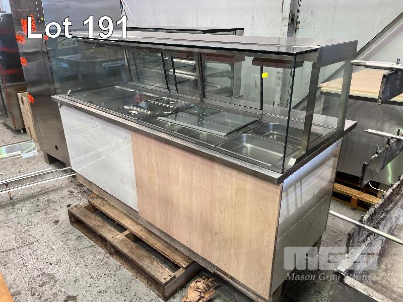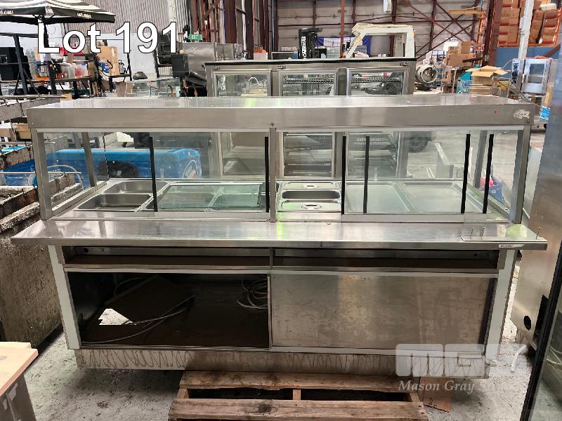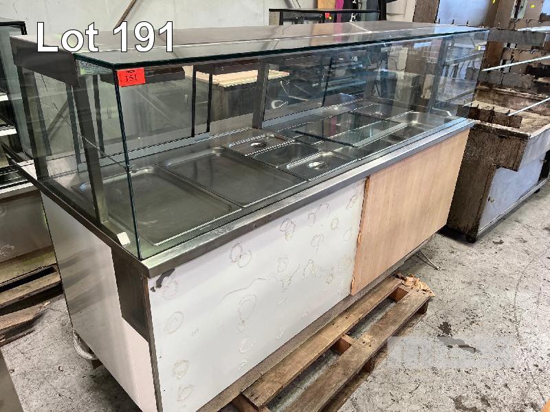 WOODSON BAIN MARIE DISPLAY COUNTER (DECOMISSIONED) 6 x HEAD LAMPS, 2100 x 940 x 1330mm, NOTE: CRACKED SIDE GLASS