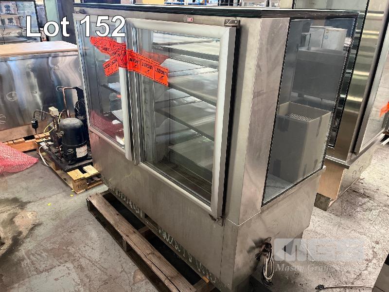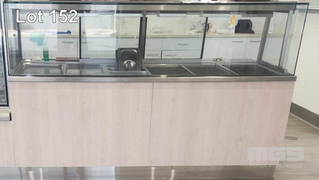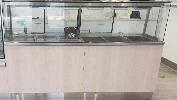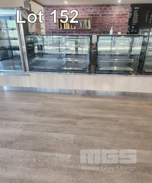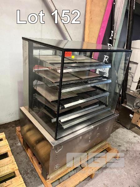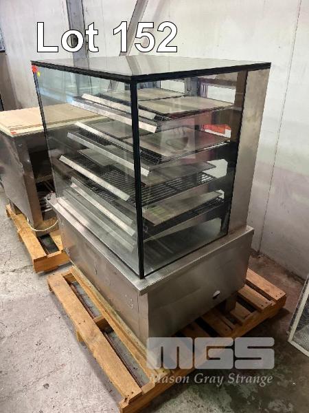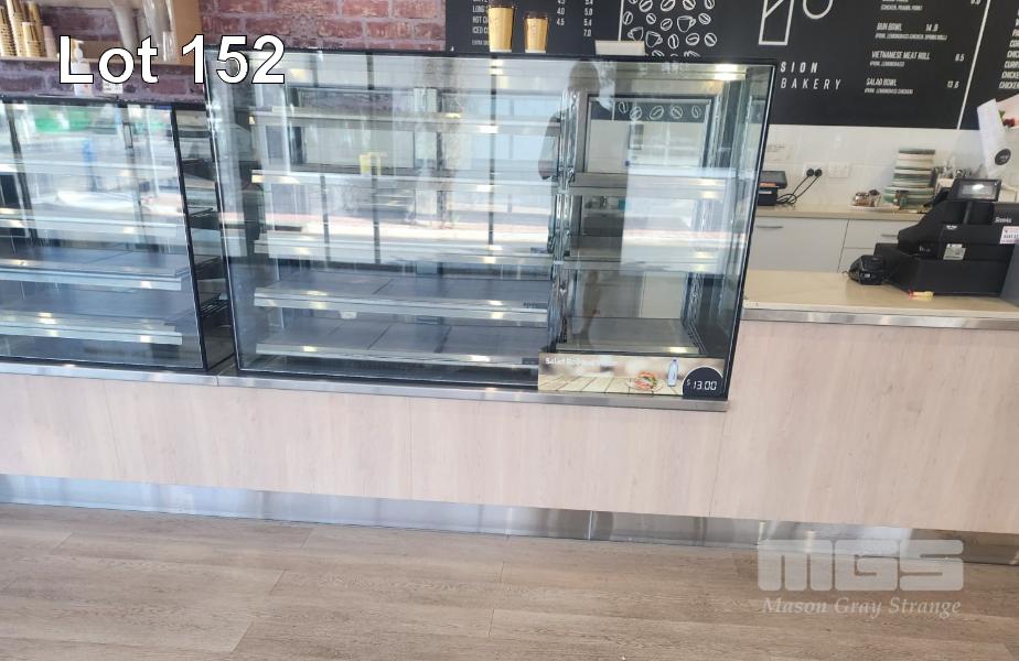 COMPLETE SHOP FRONT REFIGERATED DISPLAY SET UP COMPRISING 4 x REFIGERATED DISPLAYS - 1650 x 700 x 1500mm (H) - 900 x 700 x 1200mm (H) - 1450 x 700 x 1450mm (H) - 800 x 700 x 1700mm (H) (UPRIGHT FRIDGE) SHOP COUNTER, STAINLESS STEEL CONSTRUCTION, CEASAR STONE TOP, 1200 x 740 x 860mm PATTON COMPRESSOR, MOD: PAT200S-1F-Z-L, 240V ORIGINAL TIMBER LAMINATE SECTIONS INCLUDED (PHOTOS BEFORE & AFTER DECOMISSION PROVIDED)
