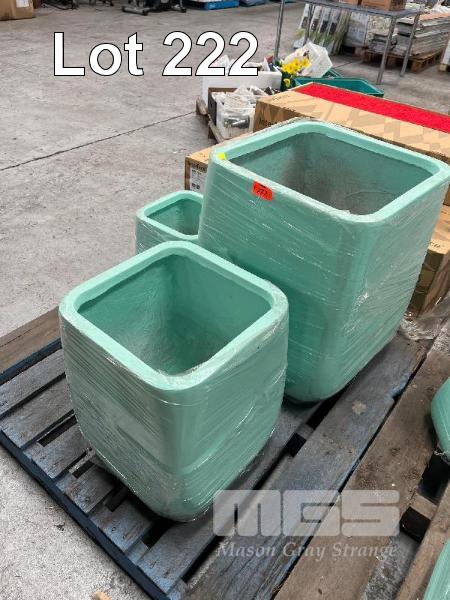 1 X SET OF 4 CONTEMPORARY PLANTER POTS (NEW) STYLE MONARCH TALL COLOUR BLUE SIZES... 1 @ 550 X 550 X 660 MM 1 @ 420 X 420 X 500 MM 1 @ 310 X 310 X 370 MM 1 @ 210 X 210 X 260 MM RRP $349.99