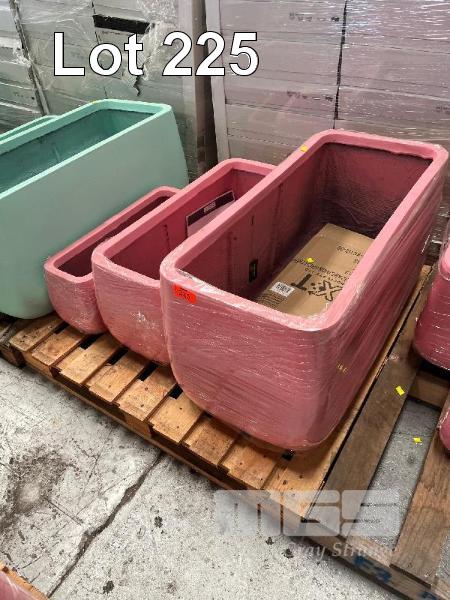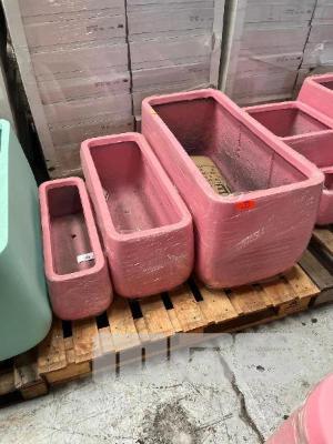 2 X SETS OF 3 CONTEMPORARY PLANTER POTS (NEW) STYLE MONARCH TROUGH COLOUR PINK SIZES 2 @ 970 x 470 x 470mm 2 @ 800 x 340 x 340mm 2 @ 650 x 230 x 240mm RRP $379.99 PER SET