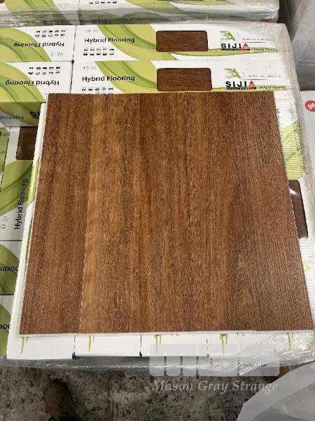 27.6m2 SIJIA HYBRID TIMBER LAMINATE FLOORING COMMERCIAL GRADE, WATER PROOF, SCRATCH PROOF, SUIT HERRINGBONE LAY PATTERN COLOUR: SPOTTED GUM TILE SIZE: 600 x 120 x 6.5mm (24 CARTONS TOTAL)