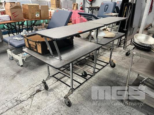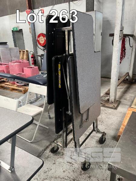 2 x MOBILE FOLDING TABLES, 185 x 73cm