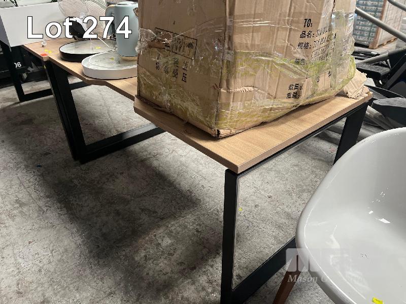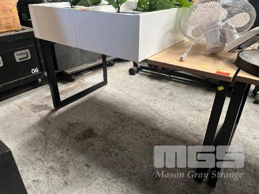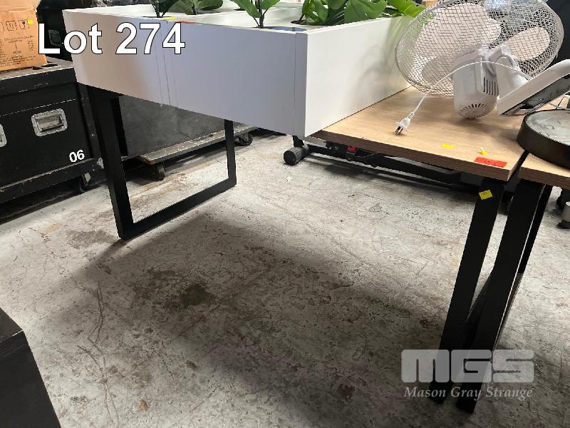 2 x DESKS, EACH 150 x 75cm, TIMBER TOP, STEEL FRAME