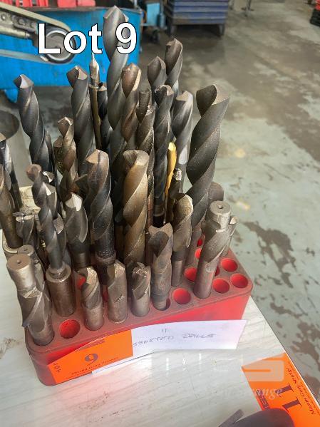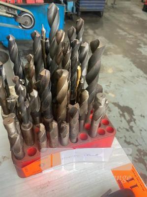 50 (APPROX) x TAPERED SHANK DRILLS, END MILLS, TAPS & 2 x BLOCKS