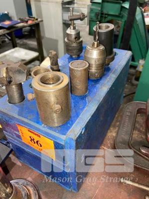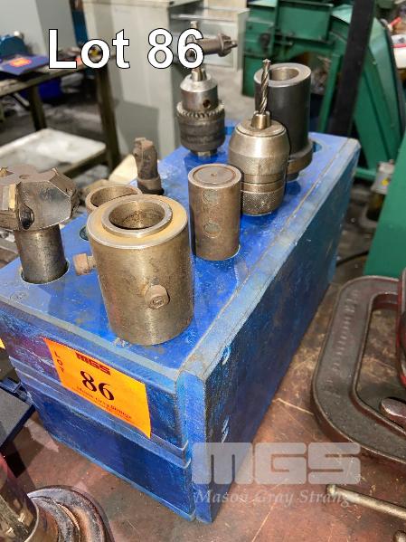 7 x TOOL HOLDERS & DRILL CHUCKS ON STAND