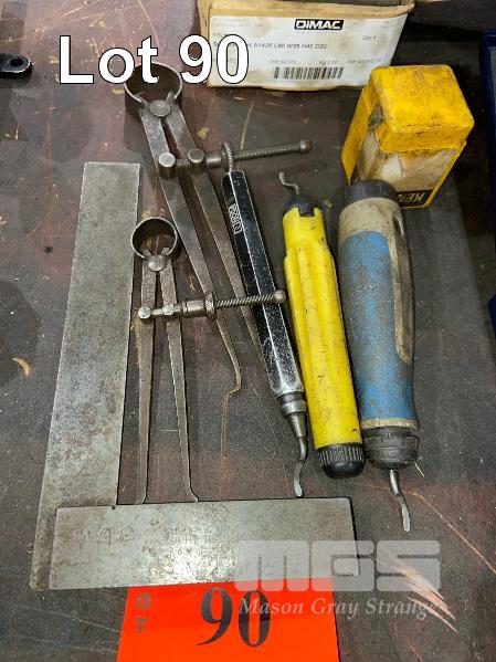STEEL SQUARE, 2 x CALIPERS & VARIOUS TOOLS