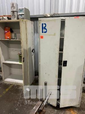 2 x STEEL STOCK CUPBOARDS, 2 DOOR, NOTE: 1 x DOOR MISSING