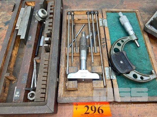 ASSORTED MEASURING TOOLS, DEPTH GAUGE, MICROMETER & BLOCK GAUGES