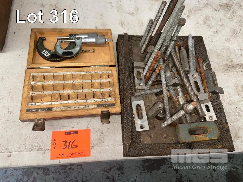 2 x MICROMETERS, ASSORTED CLAMPS & GAUGE BLOCKS, (NOT COMPLETE)