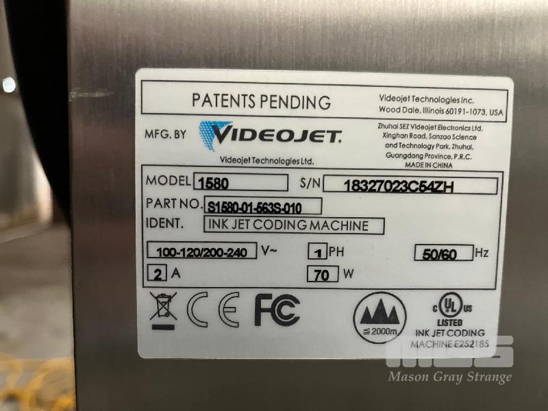 VIDEOJET INKJET CODING MACHINE, MOD: 1580, S/NO: 18327023C54ZH 240V ON STAINLESS STEEL TROLLEY