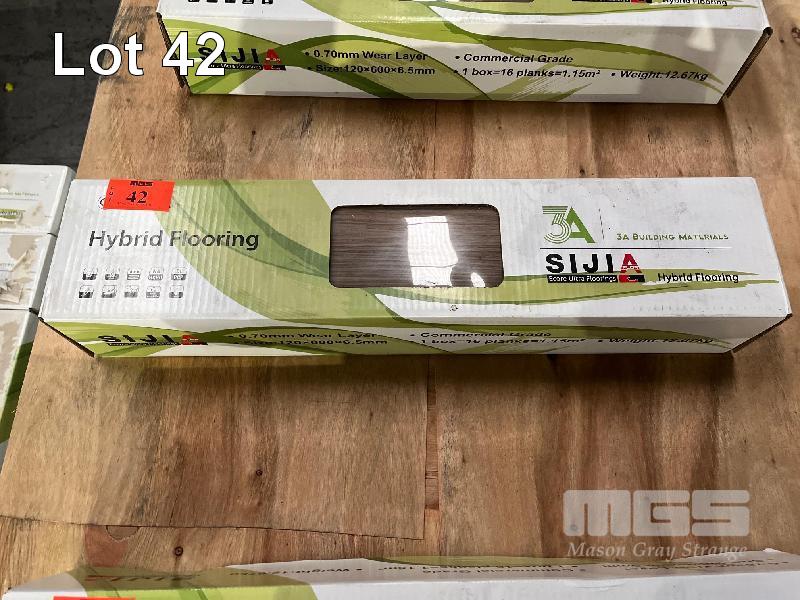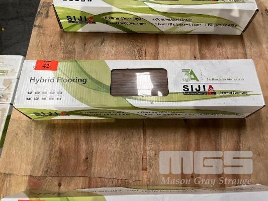 27.6m2 SIJIA HYBRID TIMBER LAMINATE FLOORING COMMERCIAL GRADE, WATER PROOF, SCRATCH PROOF, SUIT HERRINGBONE LAY PATTERN COLOUR: SPOTTED GUM TILE SIZE: 600 x 120 x 6.5mm (24 CARTONS TOTAL)