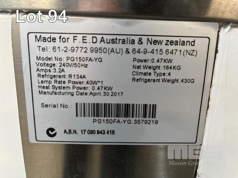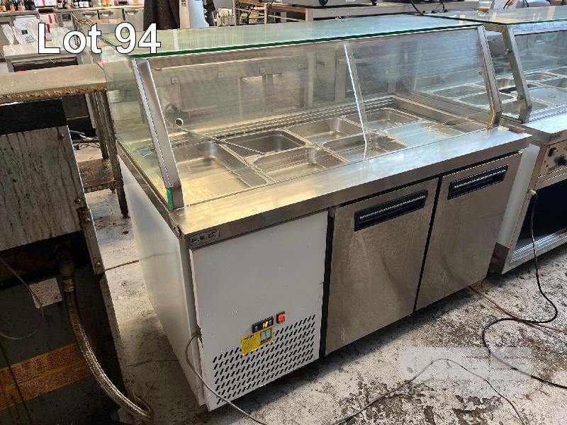 REFRIGERATED DISPLAY BAIN MARIE, 2 DOOR, FED MOD: PG150FA-YG, DOM: 2017, S/NO: 150FA-YG.3579219 CASTOR WHEELS, ILLUMINATED, WITH 7 x GASTRONORM TRAYS 240V 10 AMP PLUG