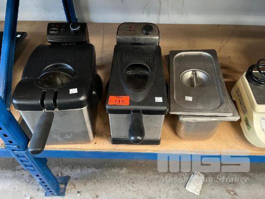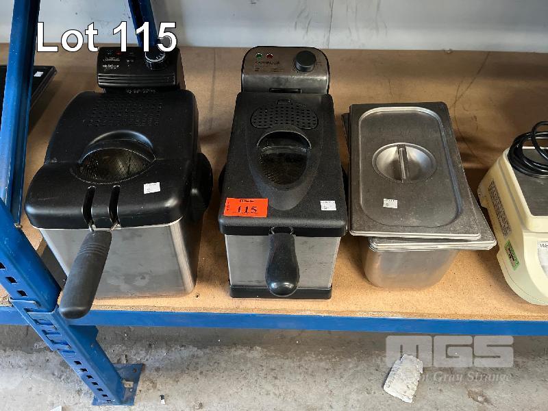 2 x BENCHTOP DEEP FRYERS, ELECTRIC KAMBROOK & SUNBEAM & 2 x STAINLESS STEEL PANS