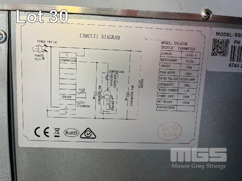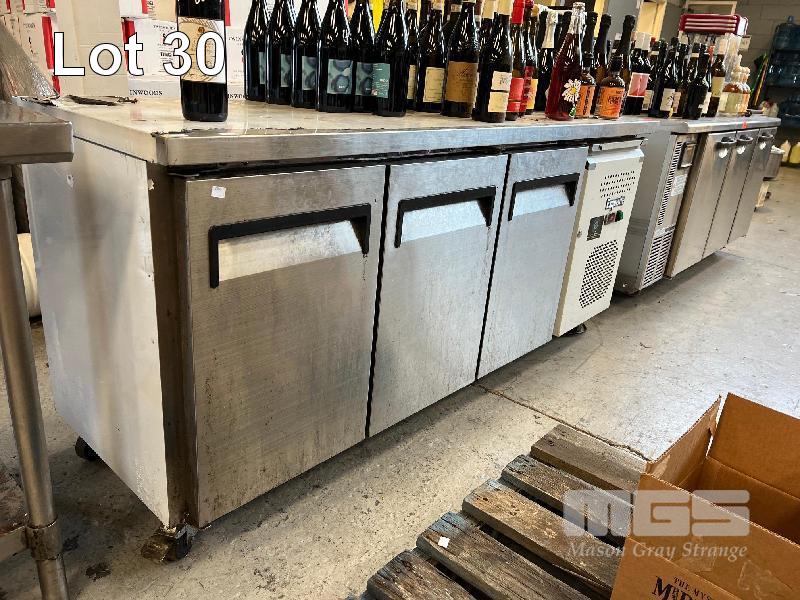 COUNTER CHEFS FRIDGE, EXQUISITE MOD: SSC400H 4 DOOR, 180cm STAINLESS STEEL CASED, SELF CONTAINED UNIT, 240V