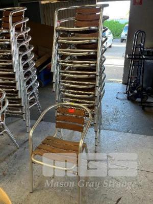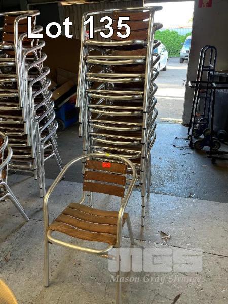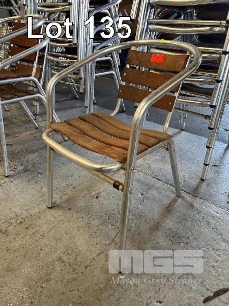 11 x OUTDOOR CHAIRS, ALUMINIUM FRAME, TIMBER SLAT