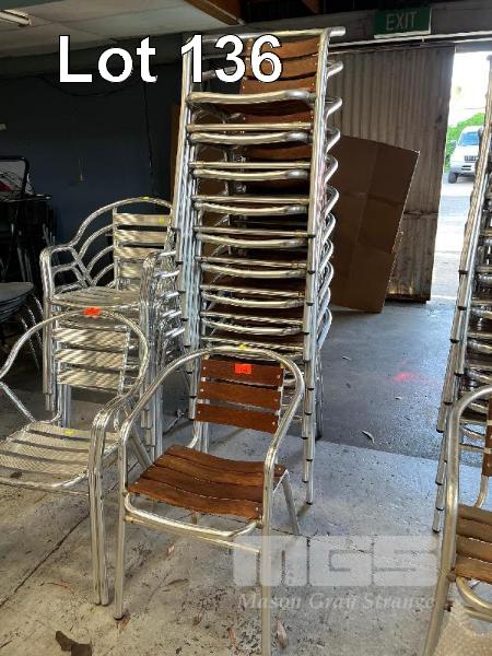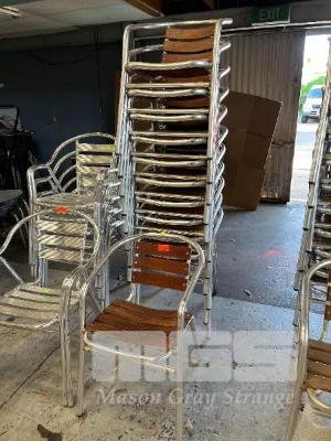 12 x OUTDOOR CHAIRS, ALUMINIUM FRAME, TIMBER SLAT