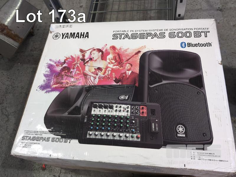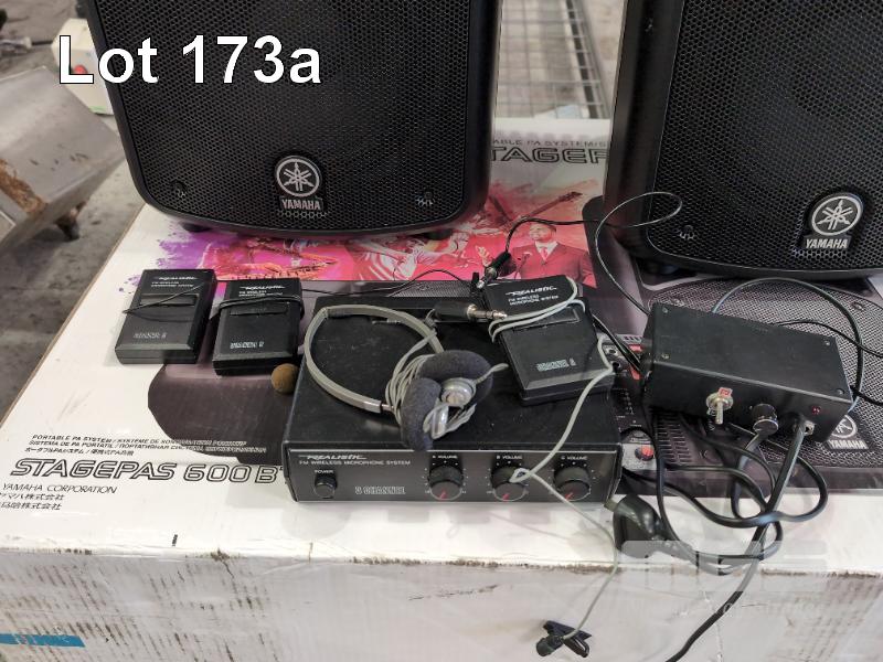 YAMAHA STAGEPASS 600BT PORTABLE BLUETOOTH PA SYSTEM. REALISTIC FM WIRELESS MICROPHONE SYSTEM, 4 X SPEAKER STANDS ETC.