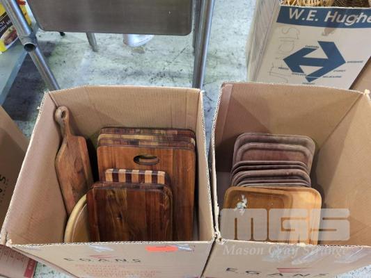 ASSORTED WOODEN CHEESE BOARDS & TRAYS (2 X BOXES)