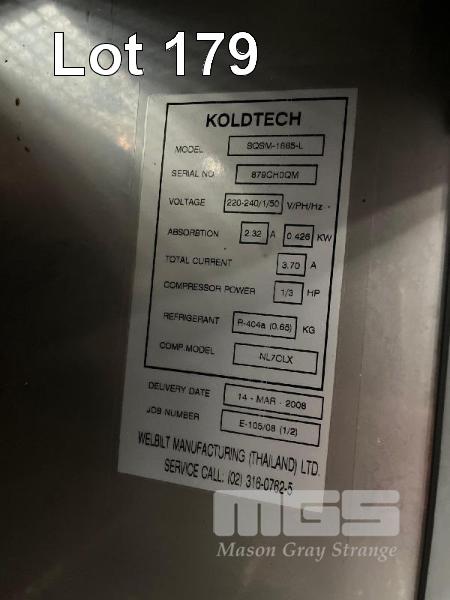 PREP FRIDGE, KOLDTECH MODEL SQSV 1685-L DOM: 2008 3 DOOR, 1900mm, STAINLESS STEEL CASED, 240V