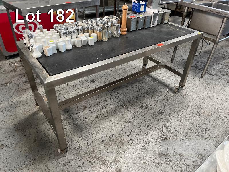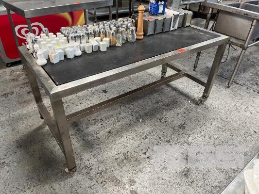 MOBILE STAINLESS STEEL BENCH, 1600 x 700mm WITH NYLON INLAY
