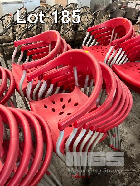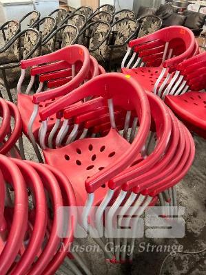 12 x OUTDOOR CAFE CHAIRS, RED PVC
