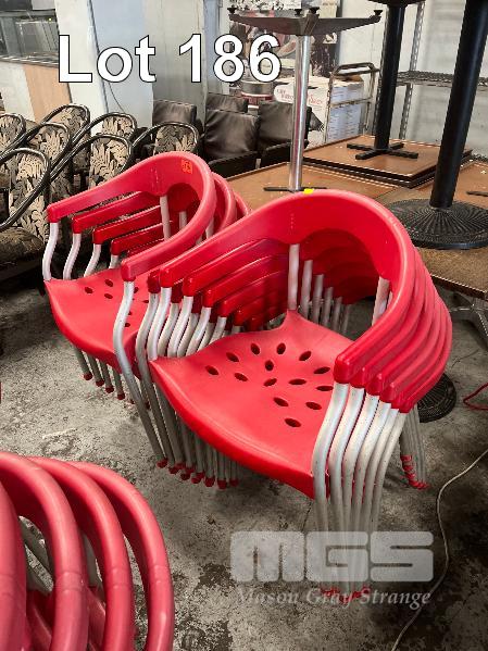 12 x OUTDOOR CAFE CHAIRS, RED PVC