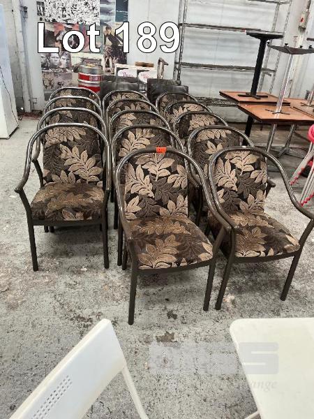 14 x DINING CHAIRS, PATTERNED FABRIC, STEEL FRAME