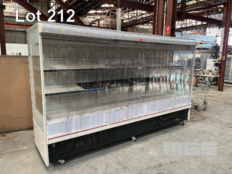 OPEN FRONT DELI DISPLAY, MOD: FL21-N12 3500 x 2100mm INTERNAL LIGHTING, PVC CURTAIN SELF CONTAINED UNIT, 240V