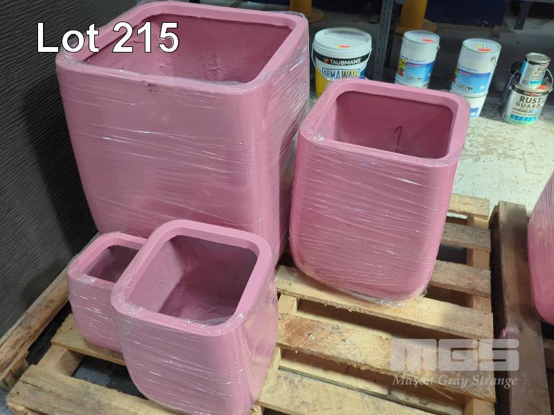 2 X SETS OF 4 CONTEMPORARY PLANTER POTS (NEW) STYLE MONARCH TALL COLOUR PINK SIZES... 2 @ 550 X 550 X 660 MM 2 @ 420 X 420 X 500 MM 2 @ 310 X 310 X 370 MM 2 @ 210 X 210 X 260 MM RRP $349.99 PER SET