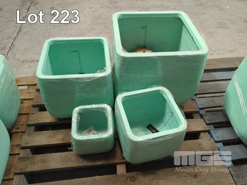 2 X SETS OF 4 CONTEMPORARY PLANTER POTS (NEW) STYLE MONARCH SQUAT COLOUR BLUE SIZES... 2 @ 550 X 550 X 480 MM 2 @ 430 X 430 X 380 MM 2 @ 330 X 330 X 290 MM 2 @ 230 X 230 X 200 MM RRP $299.99 PER SET