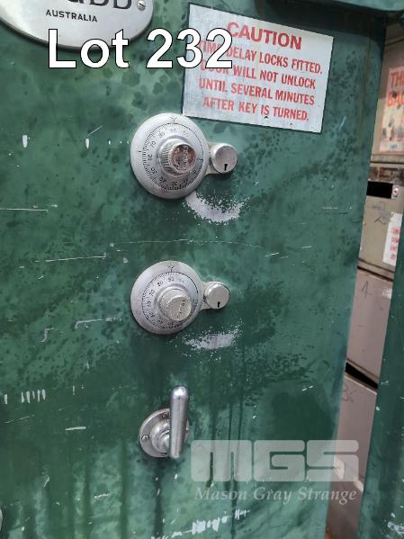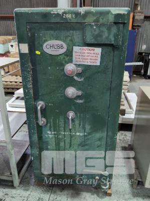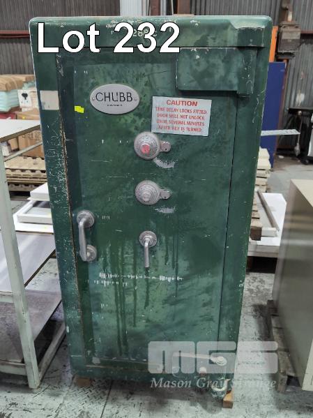 CHUBB BANK SAFE. DUAL COMBINATION LOCKS. 5 X INTERNAL LOCKABLE COMPARTMENTS WITH KEY. TORCH & DRILL RESISTANT. 2 HOUR FIRE RATING. HIGH INSURANCE RATING. 790 X 840 X 1560 MM (W D H). WEIGHT 3.0 TONNE.