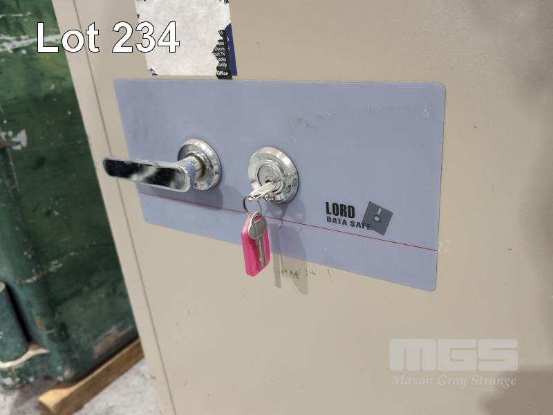 LORD DATA SAFE. KEY LOCK. 2 X KEYS. 2 HOUR FIRE RATING. 690 X 720 X 770 MM (W D H). WEIGHT 300 KG.