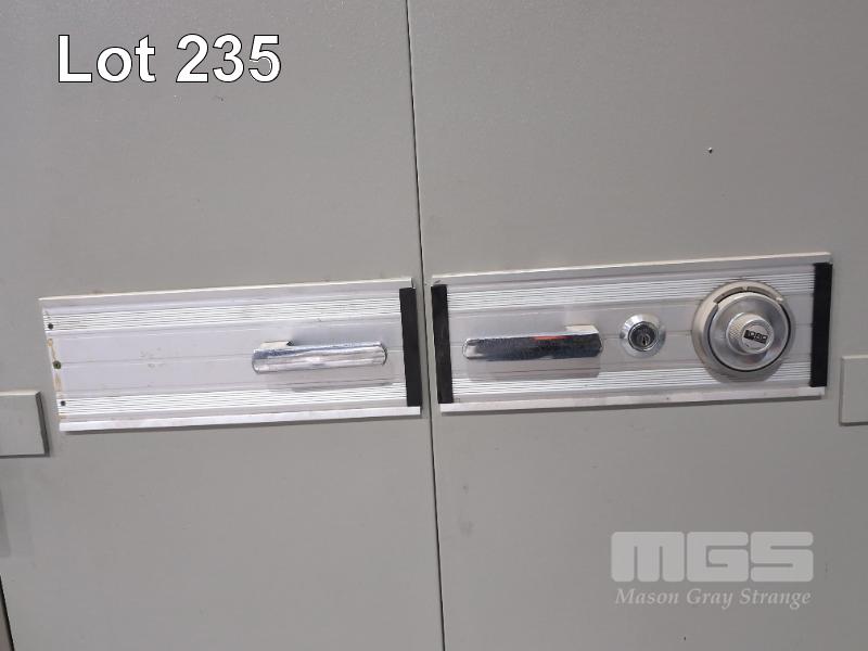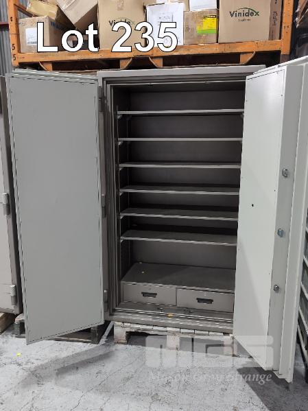 LORD 2-DOOR FIRE RESISTANT DOCUMENT SAFE. KEY AND COMBINATION LOCKS, 2 X KEYS. 7 X SHELVES AND 2 X LOCKABLE DRAWERS. 1040 X 700 X 1740 MM (W D H). WEIGHT 900 KG. 1 HOUR FIRE RATING. ** NO KEY FOR INTERNAL DRAWERS **
