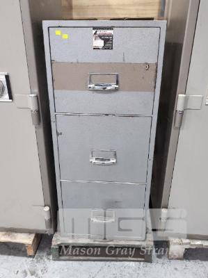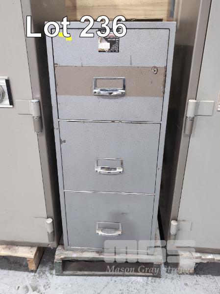 CHUBB 3-DRAWER FIRE RESISTANT FILING CABINET. 550 X 875 X 1270 MM (W D H). WEIGHT 400 KG. 2 HOUR FIRE RATING. ** MISSING LOCK **