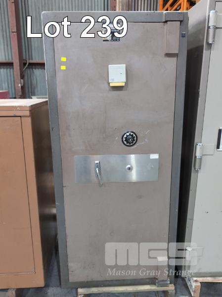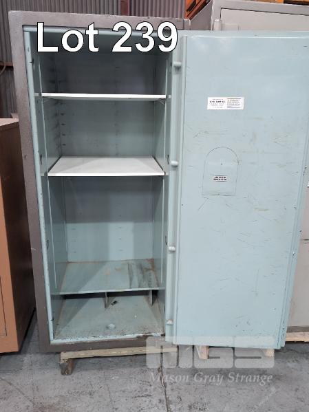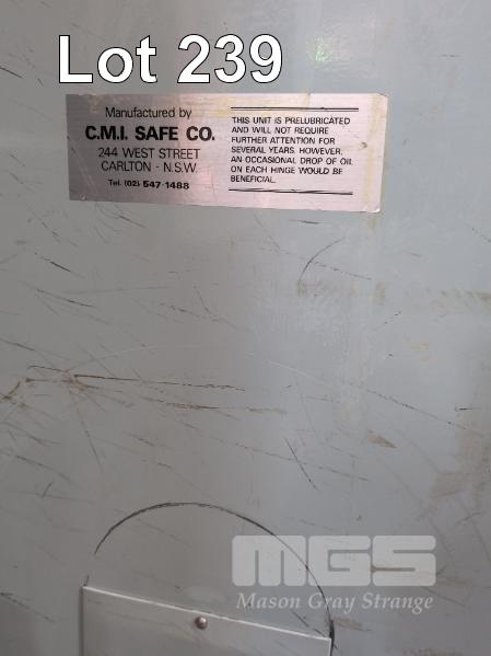 1 X CMI SINGLE DOOR FIRE RESISTANT DOCUMENT SAFE. KEY AND COMBINATION LOCKS. 1 X KEY. 760 X 765 X 1610 MM (W D H). WEIGHT 600 KG. 1 HOUR FIRE RATING. VIBRATION SENSOR ON DOOR.