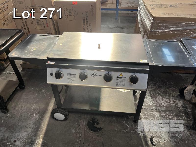 GRILLMASTER MOBILE 4-BURNER FLAT TOP GAS BBQ WITH TROLLEY NEW IN BOX ORP $599