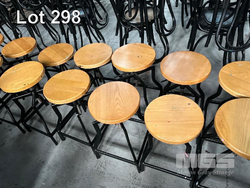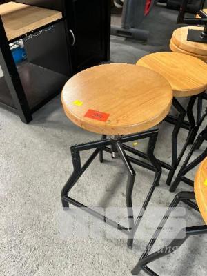 10 x CAFE STOOLS, STEEL FRAME, TIMBER TOP, ADJUSTABLE HEIGHT