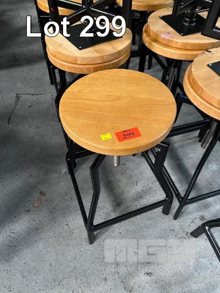9 x CAFE STOOLS, STEEL FRAME, TIMBER TOP, ADJUSTABLE HEIGHT