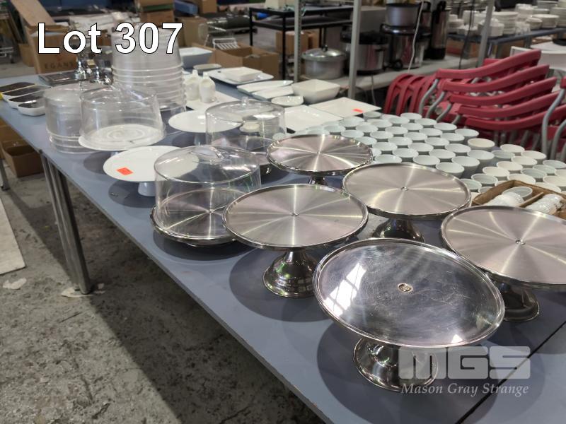10 X CAKE STANDS & 17 X COVERS.