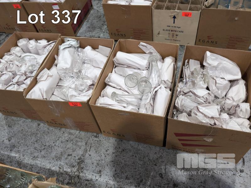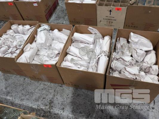 WINE & BEER GLASSES, CHAMPAGNE FLUTES, COCKTAIL GLASSES ETC (4 X BOXES)