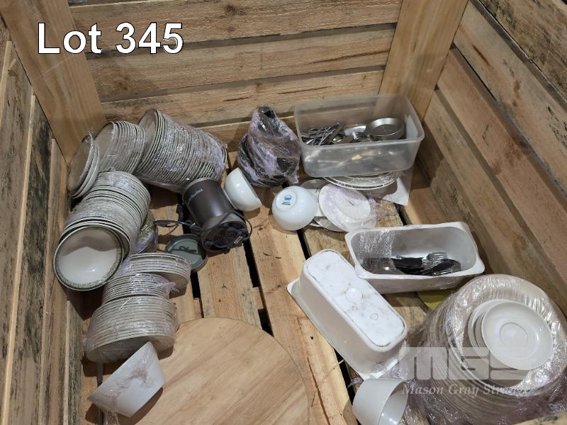 ASSORTED CROCKERY, CUTLERY ETC (CONTENTS OF APPLE BIN, BIN NOT INCLUDED)