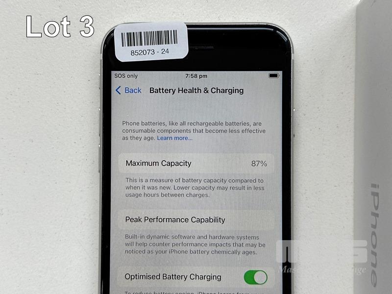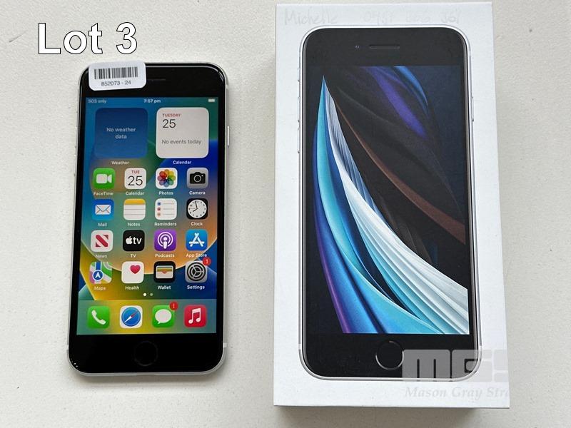 APPLE iPHONE SE, 64GB, WHITE, MODEL MX9T2X/A, A2296, BATTERY HEALTH 87% (NO CABLE, NO CHARGER) S/N:F17CTRAPPLJR