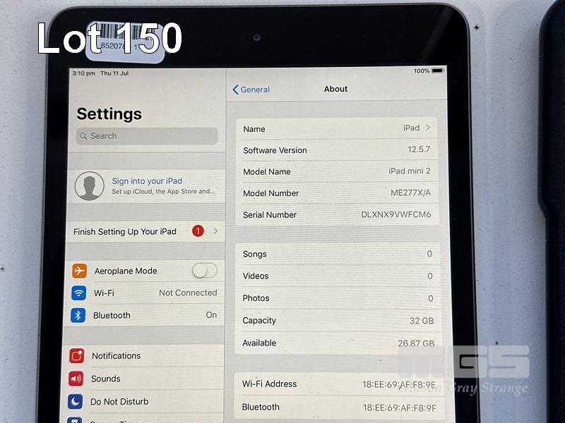 APPLE iPAD MINI 2, 32GB, Wi-Fi, SPACE GREY, MODEL ME277X/A, A1489 (NO CABLE, NO CHARGER) S/N:DLXNX9VWFCM6