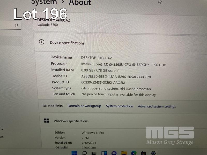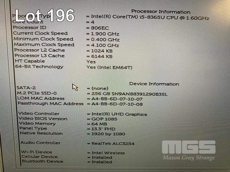LAPTOP, DELL LATITUDE 5300, CORE i5 8365U (8TH GEN) @ 1.6GHz, 8GB DDR4 RAM, 256GB NVMe M.2 SSD, 13.3" WIDESCREEN (1920x1080), INTEL UHD GRAPHICS 620, Wi-Fi, CELLULAR, BLUETOOTH, WINDOWS 11 PRO INSTALLED (NO POWER SUPPLY) (NOTE: MINOR MARKS ON SCREEN) S/N:8F6WGW2