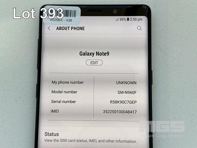 SAMSUNG GALAXY NOTE9 SMARTPHONE, 128GB, BLACK, MODEL SM-N960F (NO USB-C CABLE, NO CHARGER) (NOTE: MINOR SCRATCHES ON SCREEN) S/N:R58K90C7GEP