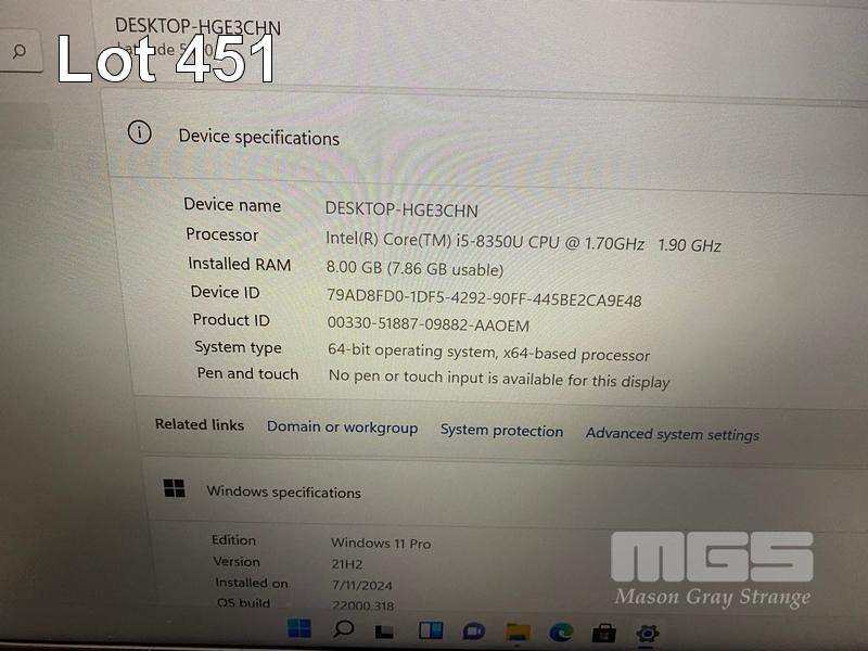 LAPTOP, DELL LATITUDE 5490, CORE i5 8350U (8TH GEN) @ 1.7GHz, 8GB DDR4 RAM, 256GB M.2 SSD, 14" WIDESCREEN (1920x1080), INTEL UHD GRAPHICS 620, Wi-Fi, CELLUAR, BLUETOOTH, WINDOWS 11 PRO INSTALLED (NO POWER SUPPLY) S/N:5375YT2