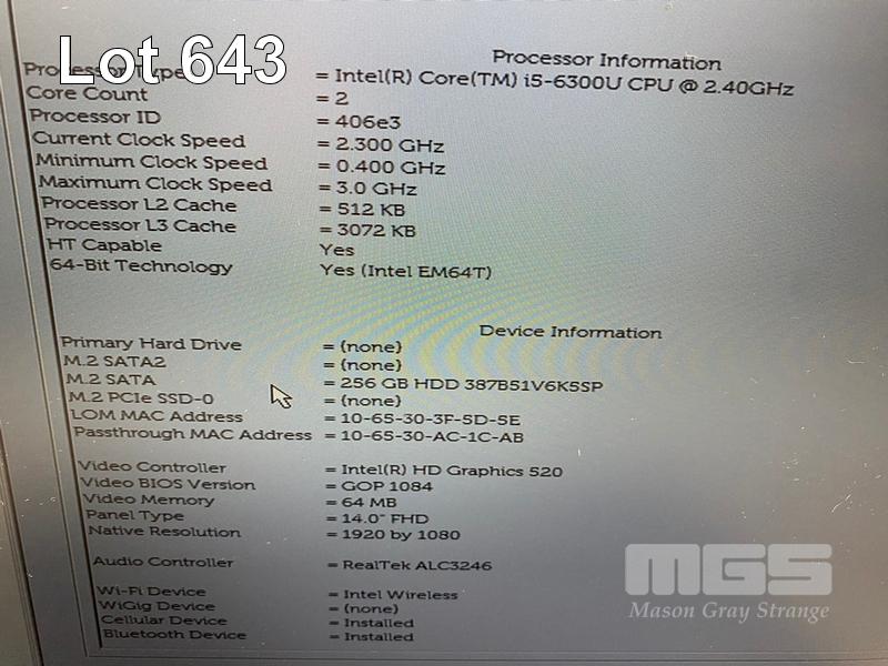 LAPTOP, DELL LATITUDE 5480, CORE i5 6300U (6TH GEN) @ 2.4GHz, 8GB DDR4 RAM, 256GB M.2 SSD, 14" WIDESCREEN (1920x1080), INTEL HD GRAPHICS 520, Wi-Fi, CELLULAR, BLUETOOTH, WINDOWS 10 PRO INSTALLED (NO POWER SUPPLY) S/N:8HGRQN2
